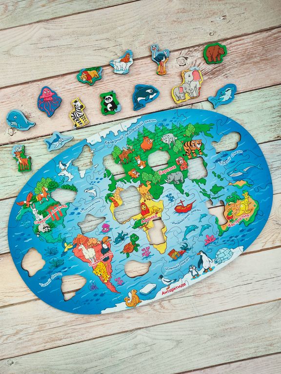 Фигурный пазл MAXI "Карта мира. Животные"