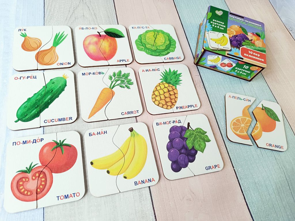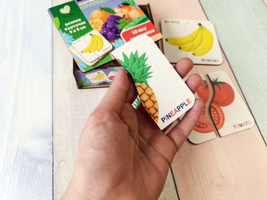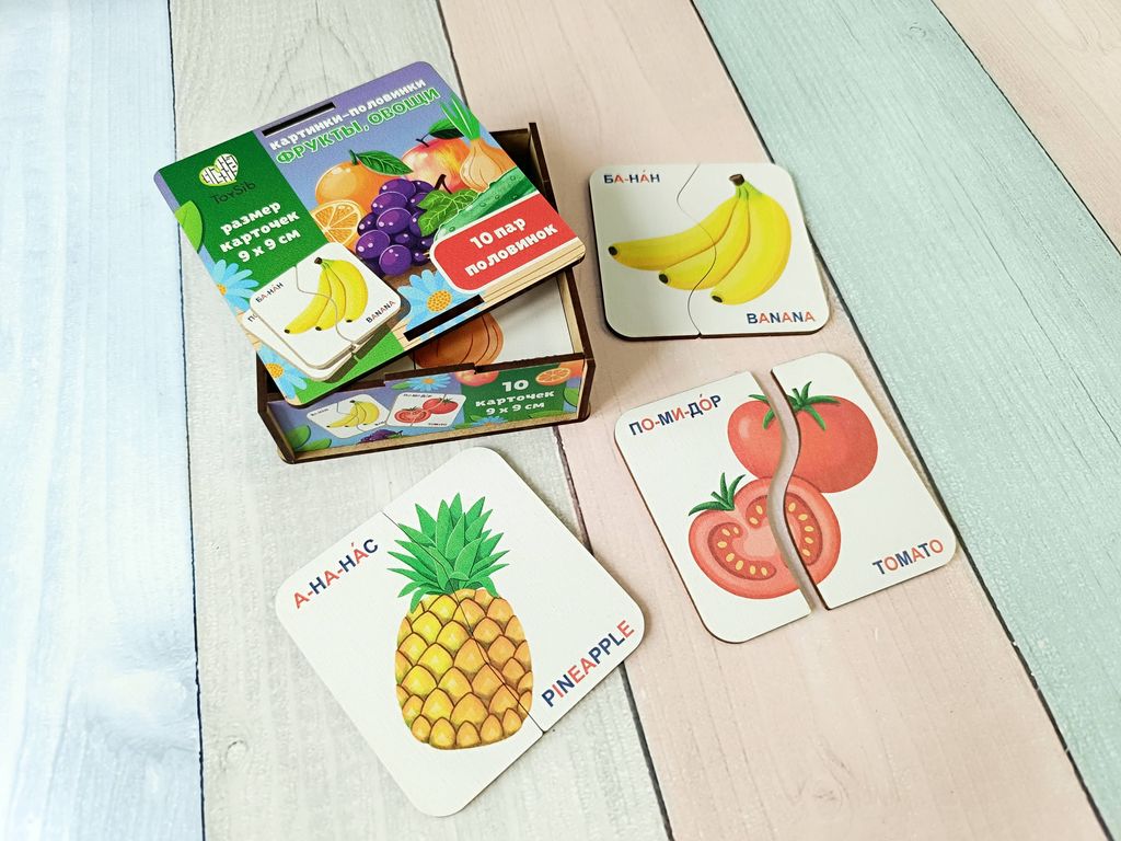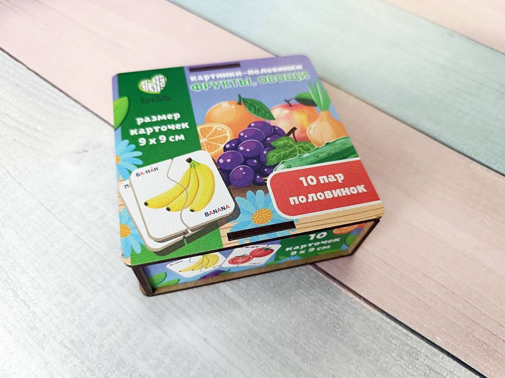 - 10 картинок овощей и фруктов в удобном сундучке для хранения