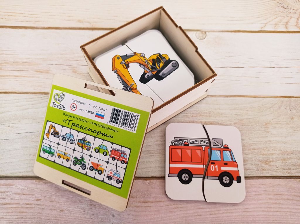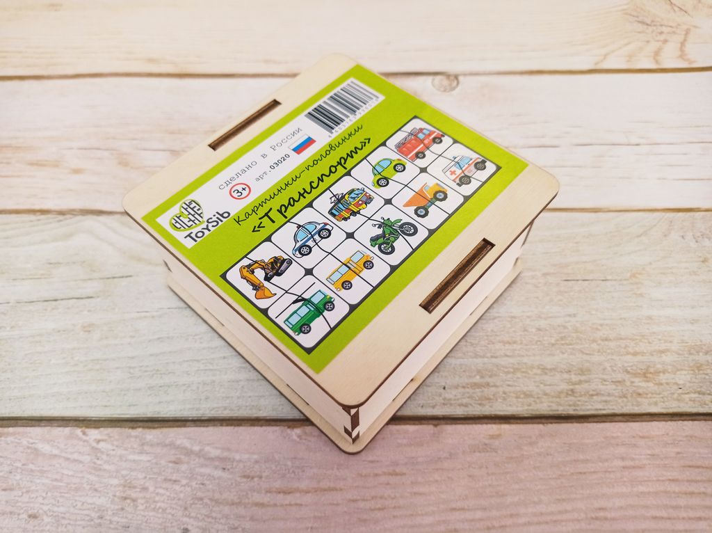 - 10 картинок c разными видами транспорта в удобном сундучке для хранения