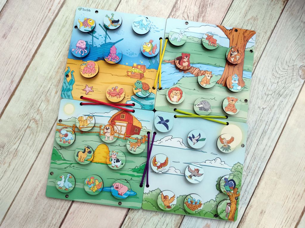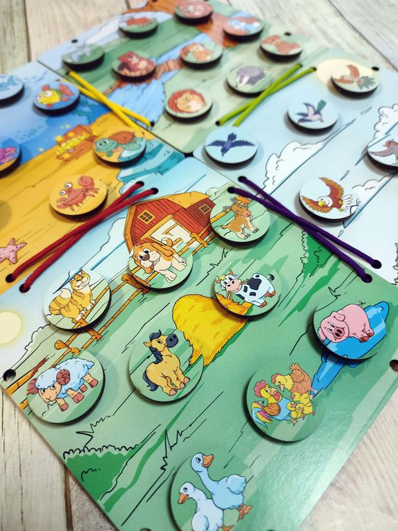 - В комплекте: 4 планшета (размером 145*145*3 мм), 36 фишек (размером 30*3 мм), 4 разноцветных шнурка (цвета шнурков могут отличаться от фото)