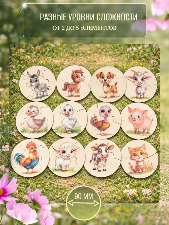 - Размер пазла: 90*90*3 мм
