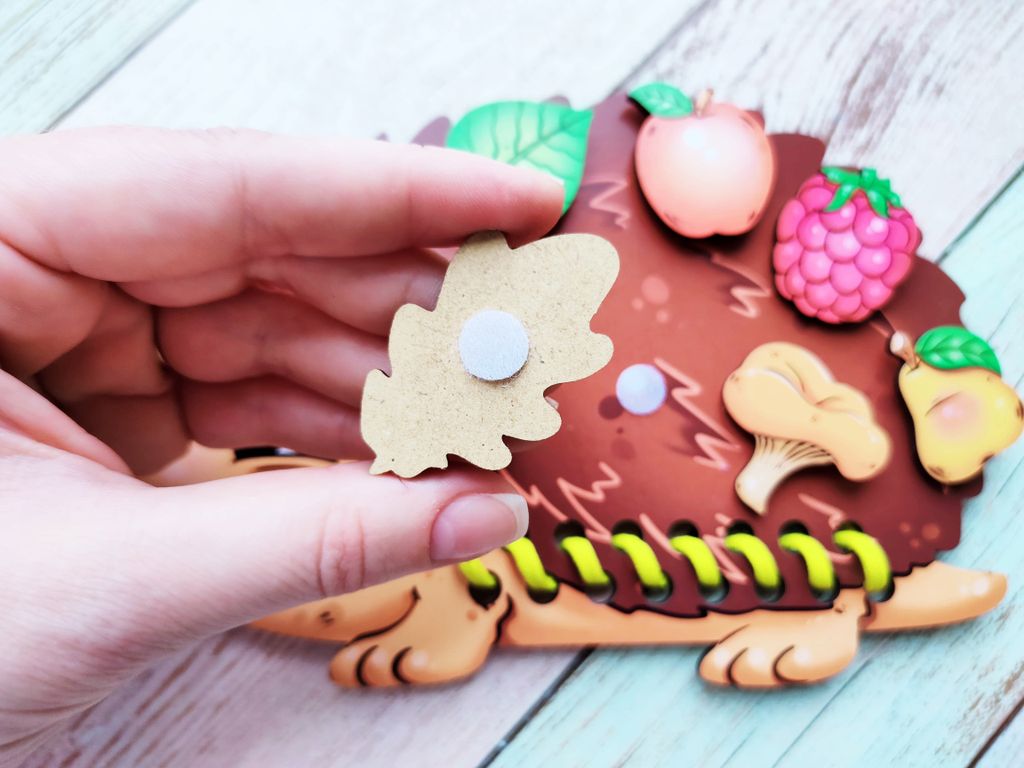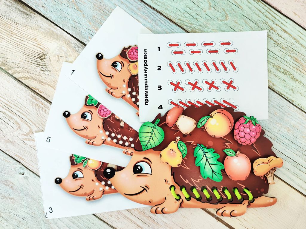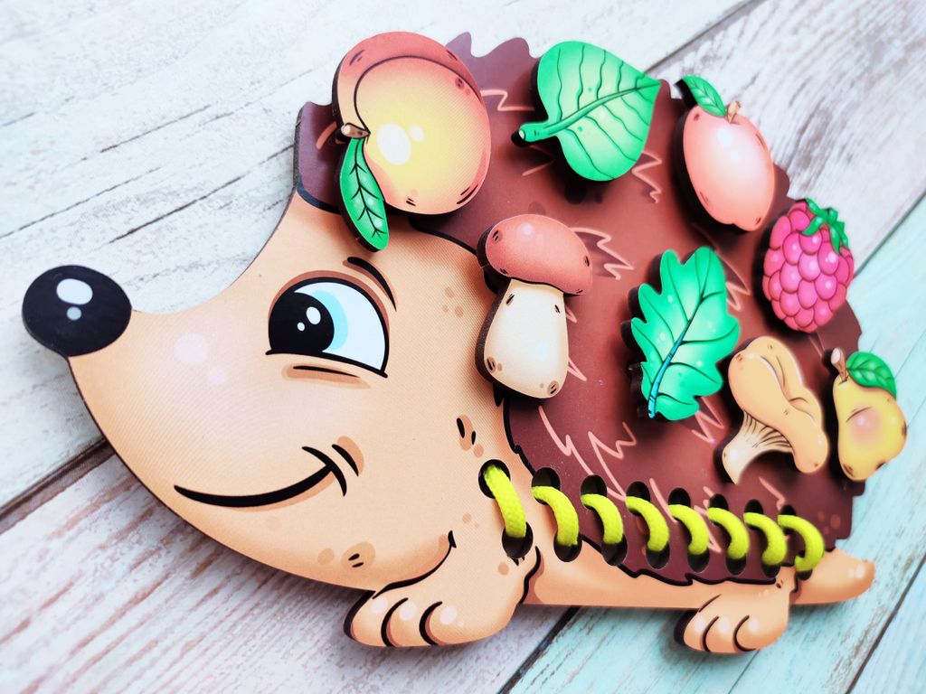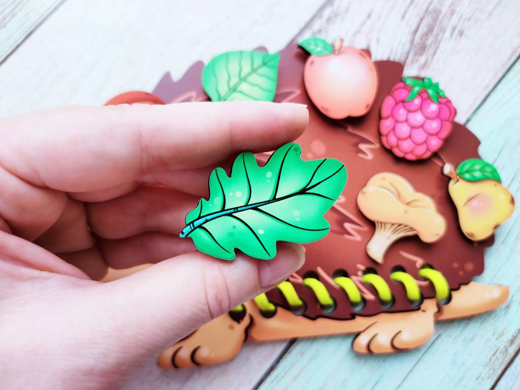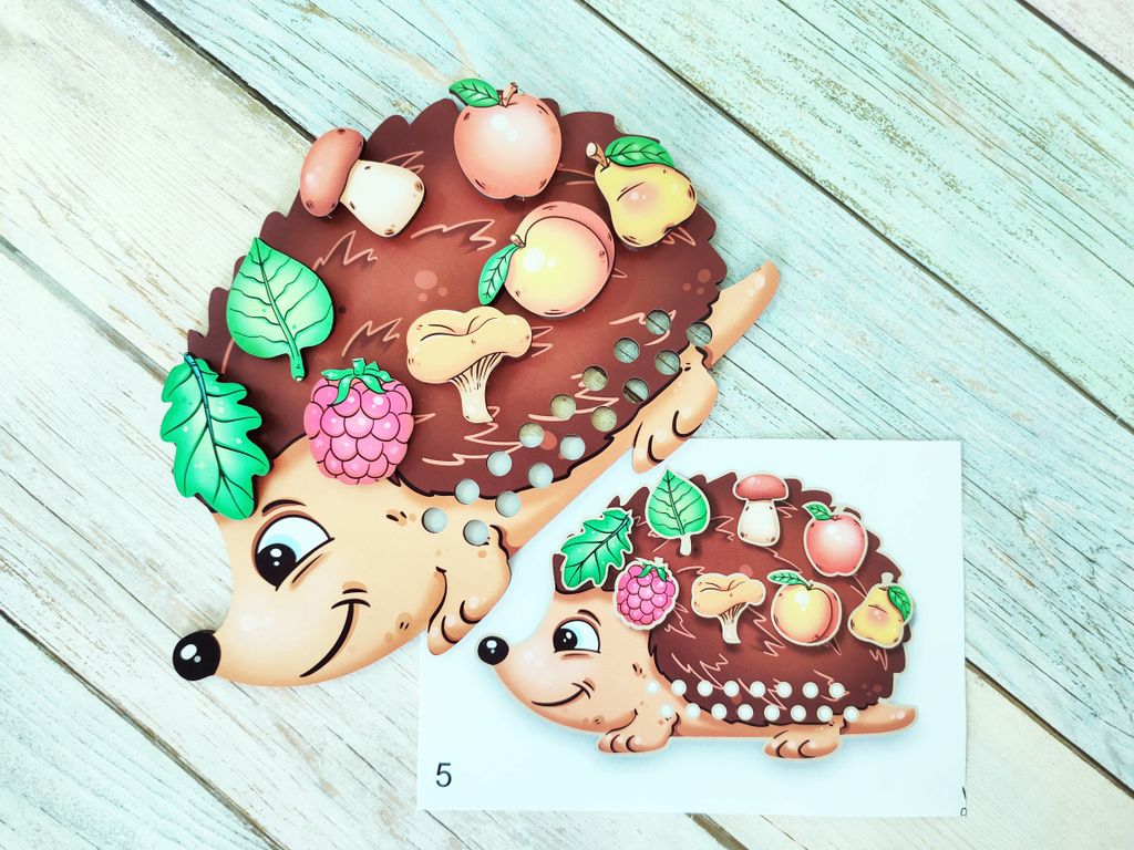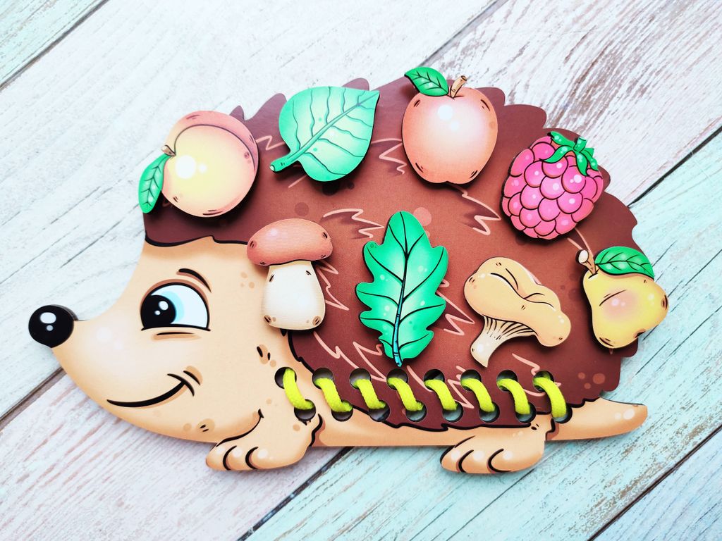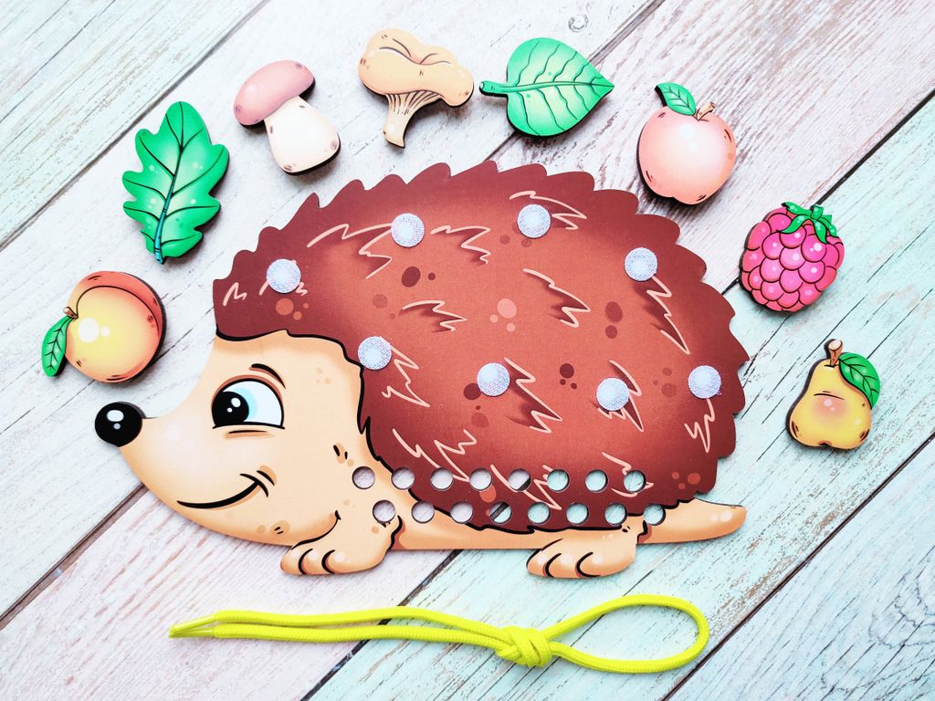 - В комплекте: игровая панель в виде ёжика, 8 игровых фигурок, шнурок, вкладыш с заданиями