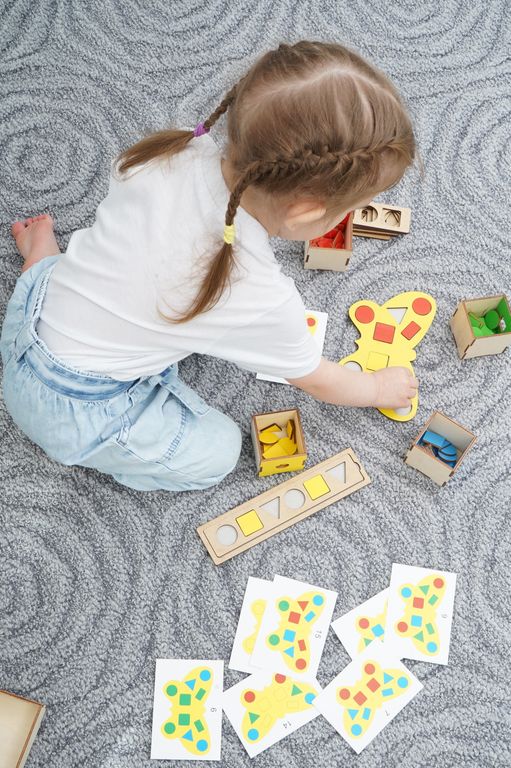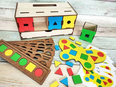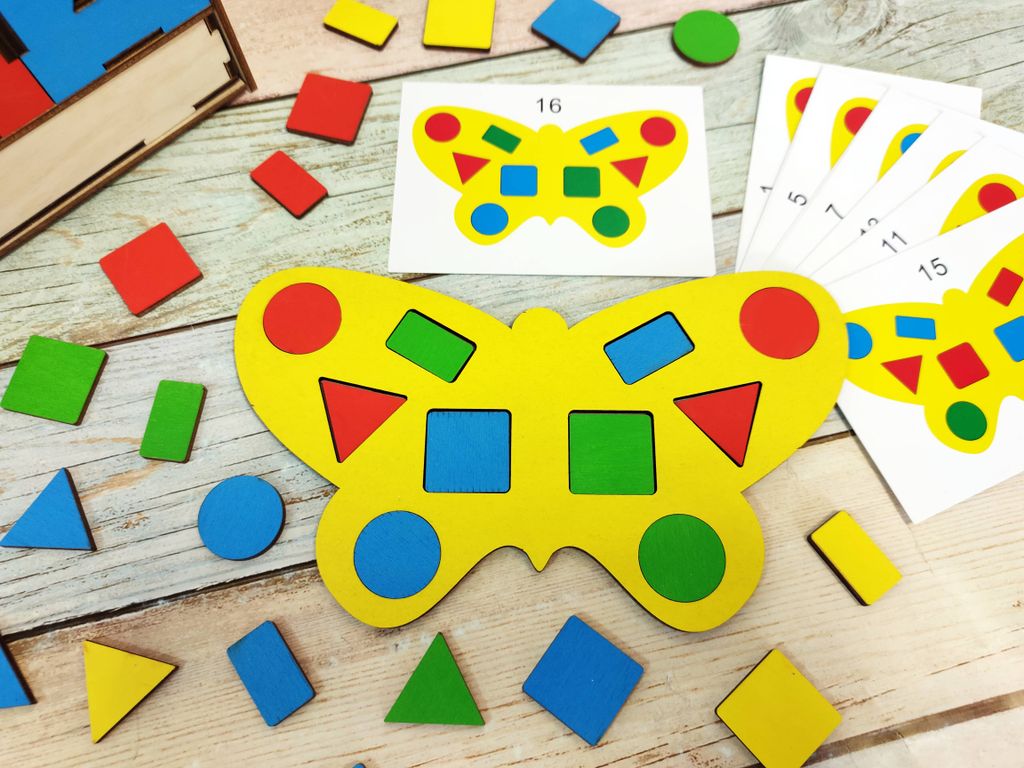- Разноцветные геометрические фигуры - 64 шт (по 16 шт каждого цвета, окрашены с 2х сторон);
